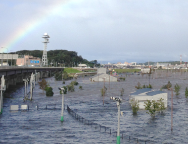 (1) Advancement of Urban Flood Risk ManagementAs the frequency of torrential rainfall increases, development of smart urban flood control is required. Therefore, we have been developing next-generation urban flood prediction systems that utilize advanced technologies such as high-resolution radar rainfall observation and real-time sensing of water levels in drainage pipes using manhole IoT. We have conducted research on maximized utilization of inundation countermeasure facilities based on highly accurate flood prediction information, evacuation behavior guidance and inundation prevention plans for damage reduction. Image: A new urban inundation model that comprehensively analyzes water levels in river and drainage systems in the Tsurumi River lowland |