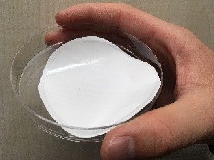 (1) Efficient Removal of Viruses and Harmful Substances from Water Using Nanostructured Liquid-Crystalline Polymer MembranesAccess to safe water free of viruses and harmful substances is one of the most important issues worldwide. We are developing nanostructured liquid-crystalline membranes to efficiently remove viruses and other harmful substances from water. These self-organized porous polymer membranes with channels of uniform pore size at the sub-nano or nanometer level have shown to be useful for removal of viruses from water. Photo: A water treatment membrane that purifies water by utilizing the property that liquid crystal molecules have an ordered structure |
